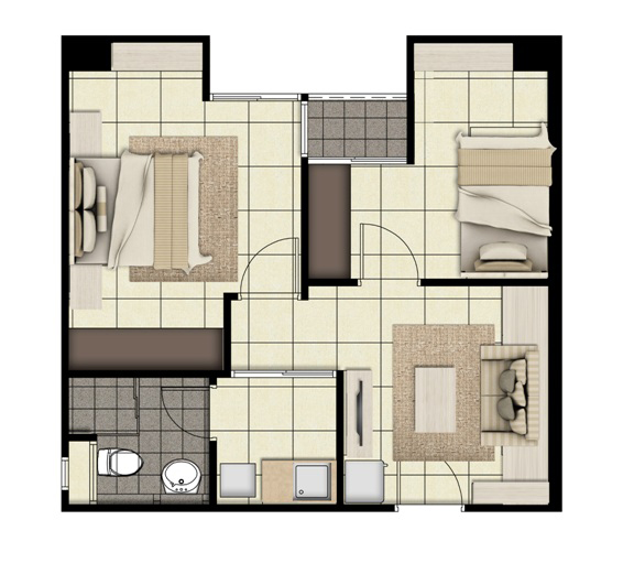 Type 2B 1 แบบ 2 ห้องนอน พื้นที่ใช้สอย 61.68 ตร.ม.