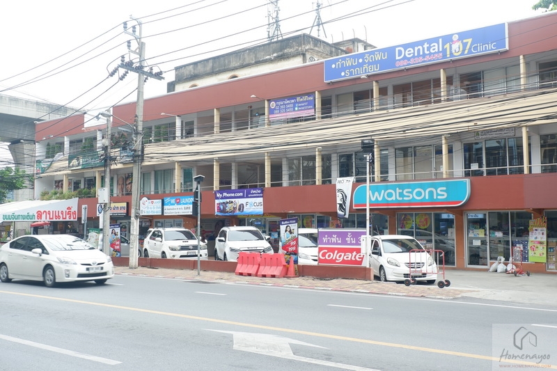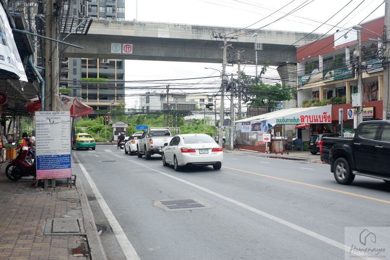 ส่วนทางฝั่งซ้ายมือ ตัวโครงการจะอยู่ติดกับซอยแบริ่ง 4 ถัดไปเป็นตึกแถวยาวไปจนถึงหน้าปากซอยเลย