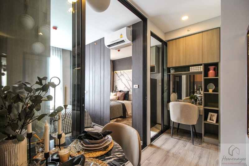 ห้องแต่ละ Type ก็ถูกออกแบบมาให้มีฟังก์ชั่นที่ลงตัว ด้วยการออกแบบฝ้าเพดานสูง 2.6 เมตร ทำให้ห้องมีภาพรวมที่ดูโปร่งโล่ง แปลนห้องส่วนใหญ่จะแบ่งส่วน Living Area, ห้องครัว และห้องนอน ออกจากกันด้วยบานเลื่อนกระจก (หรือผนังทึบในห้องแบบ 2 Bedrooms)