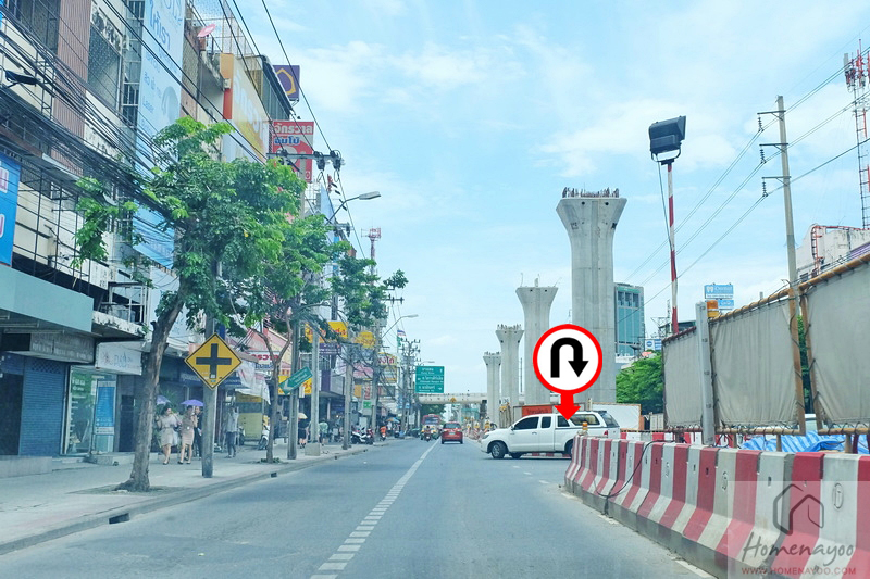 ผ่านกรมพัฒนาที่ดินประมาณ 70 ม.จะมีจุดกลับรถ ตรงนี้จะเห็นนะคะว่าตรงกลางถนนพหลโยธินนั้นกำลังก่อสร้างทางรถไฟฟ้าสายสีเขียวอยู่ ซึ่งก็จะสะดวกสำหรับการเดินทางในอนาคต