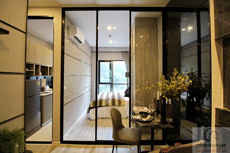 การออกแบบห้องแบ่งเป็นสัดส่วนเหมาะสำหรับพัอาศัย 1-2 คน เพราะส่วนใหญ่ย่านนั้นเป็นย่านสถานศึกษา มีทั้งนักศึกษาและนักเรียนจึงไม่ได้ออกแบบให้มีห้องแบบ 2 ห้องนอนแต่เป็นแบบ 1 Plus คือมีห้องนอนและห้องอเนกประสงค์ที่สามารถทำเป็นห้องทำงานได้ อีกทั้งความสูงห้องจากพื้นถึงเพดานสูงถึง 3 ม.จึงทำให้ห้องดูโปร่ง โล่งและกว้างขึ้นค่ะ