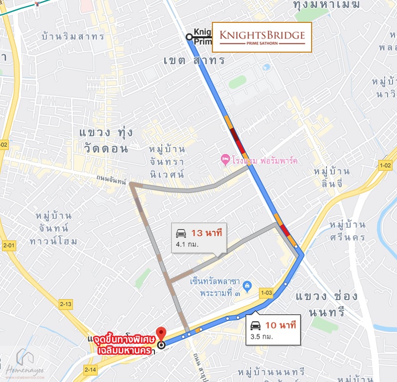 จากแยกสาทร-นราธิวาส ให้เราขับตรงไปอีก 600 เมตรค่ะ ระหว่างทางเราจะเห็นคอนโดมิเนียมอยู่หลายโครงการเลย