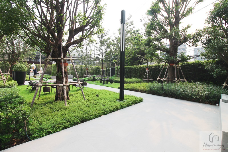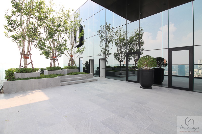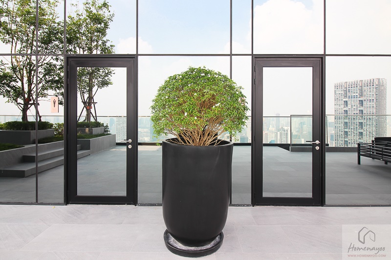สวนหย่อมบนชั้นดาดฟ้านี้ก็ออกแบบมาได้น่าใช้งานเหมือนกันค่ะ เหมาะสำหรับคนที่รักการออกกำลังกายแบบ Outdoor หรือหลังออกกำลังกายเสร็จ ก็สามารถออกมาใช้พื้นที่ตรงนี้ยืดเส้นยืดสายและรับลมคลายร้อนได้