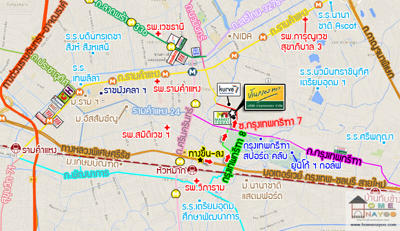 | สถานที่สำคัญใกล้เคียง | 1. สนามกอล์ฟกรุงเทพกรีฑา 2. สนามกอล์ฟยูนิโก้ 3. สนง.เขตบางกะปิ 4. รพ.รามคำแหง 5. ม.อัสสัมชัน 6. ม.รามคำแหง 7. สนามบินสุวรรณภูมิ |