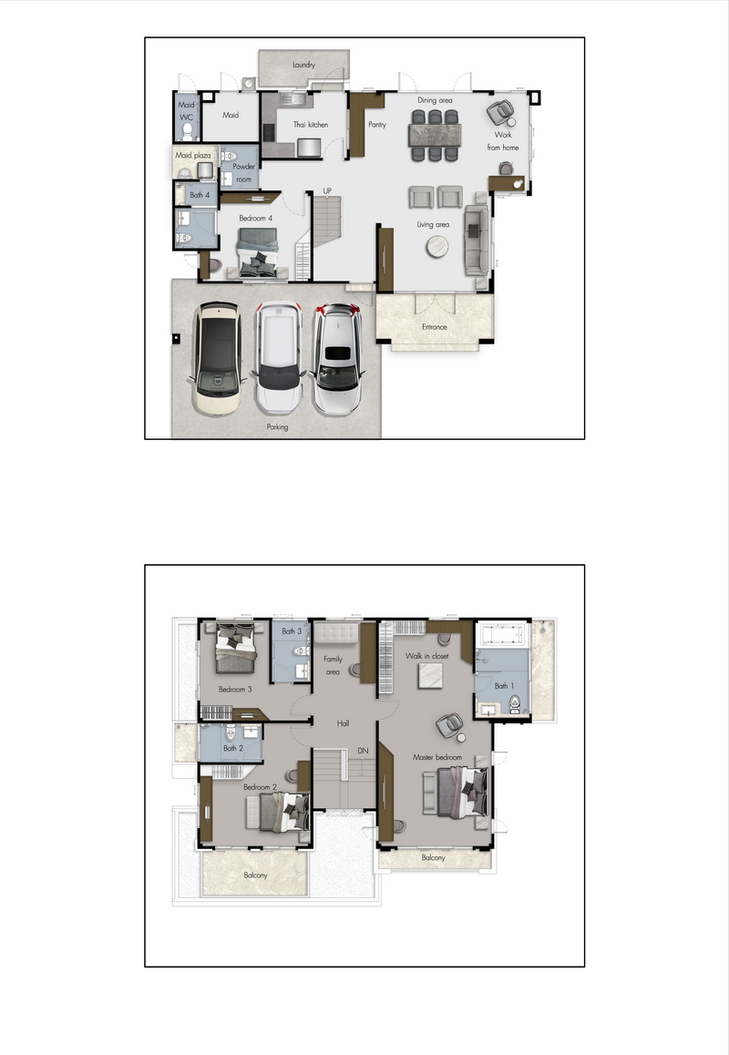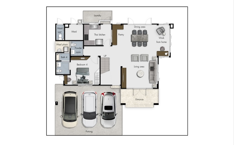 แบบบ้านมีให้เลือกมากถึง 5 แบบ ขนาดที่ดินเริ่มต้นตั้งแต่ 54-131 ตร.ว. พื้นที่ใช้สอยกว้างขวาง 228-396 ตร.ม. รองรับครอบครัวขนาดกลางถึงขนาดใหญ่ได้อย่างสบาย ฟังก์ชันจัดเต็มทั้ง 4 ห้องนอน, 3-5 ห้องน้ำ พร้อมที่จอดรถ 2-3 คัน
