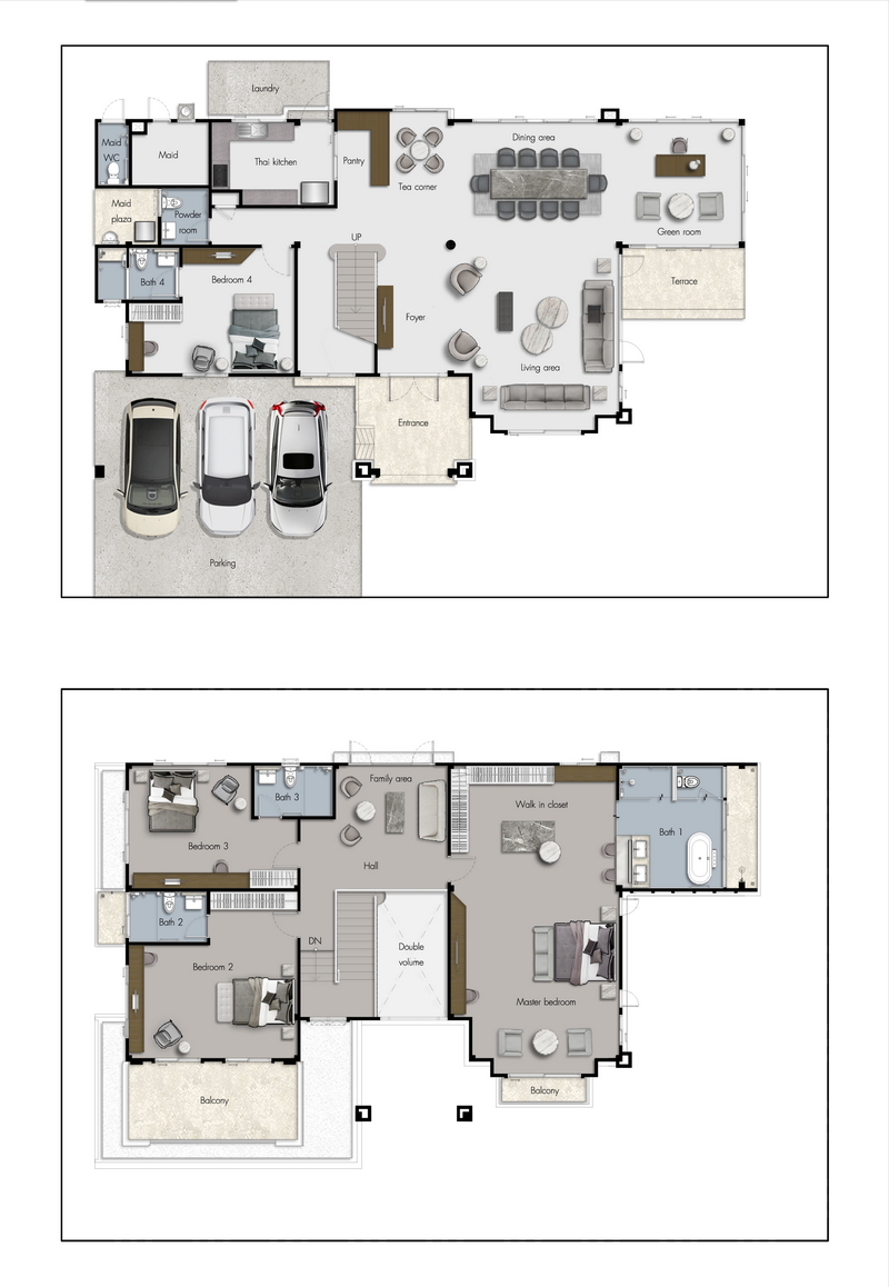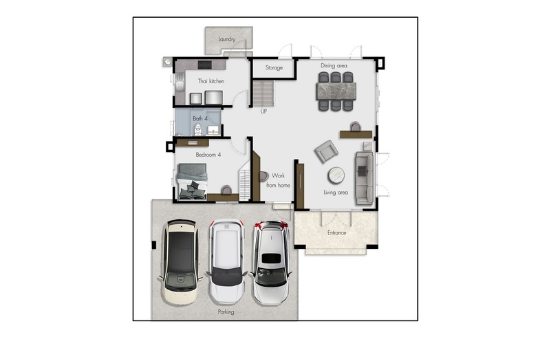 จำนวนห้อง | 4 ห้องนอน, 3-5 ห้องน้ำ |