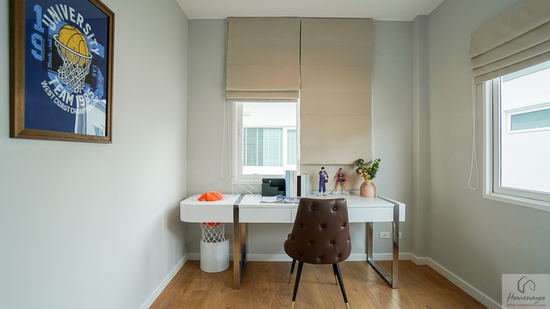 ภายในห้องนี้มีพื้นที่กว้างพอสมควร รองรับการปรับฟังก์ชันได้หลากหลาย ไม่ว่าจะใช้เป็นห้องทำงานส่วนตัว, สตูดิโอสร้างสรรค์งานอดิเรก, ห้องเลี้ยงเด็ก หรือปรับเป็นห้องนอนชั้นล่างสำหรับผู้สูงอายุก็สะดวกสบาย