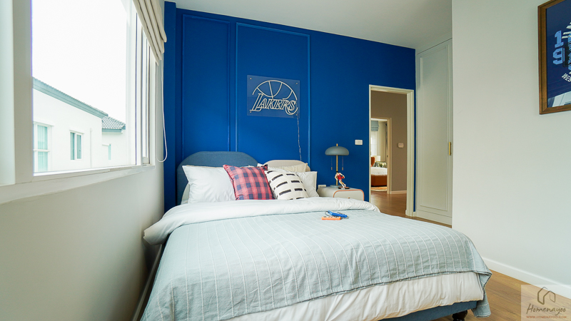 ขยับมาที่โซนพักผ่อน มีพื้นที่กว้างกำลังดี สามารถวางเตียงนอน 3.5-5 ฟุต หรือบ้านไหนที่มีสมาชิกเด็ก ๆ ที่วัยไล่เลี่ยวกัน สามารถวางเตียงเดี่ยว 3-3.5 ฟุต 2 เตียงใกล้ ๆ กันได้เลยค่ะ