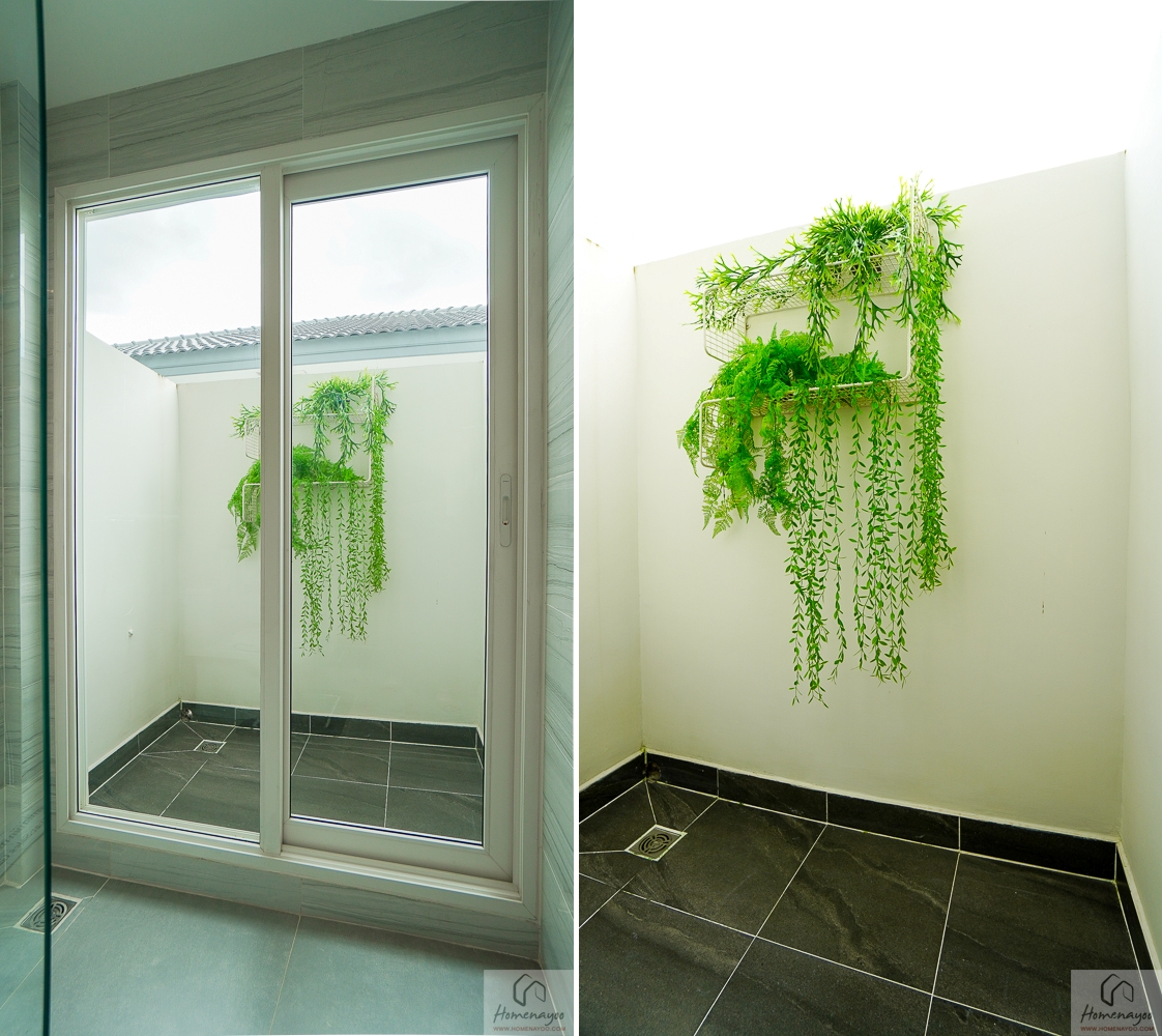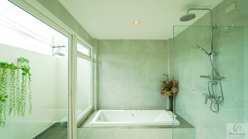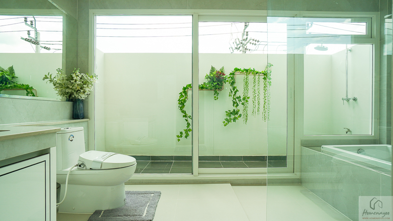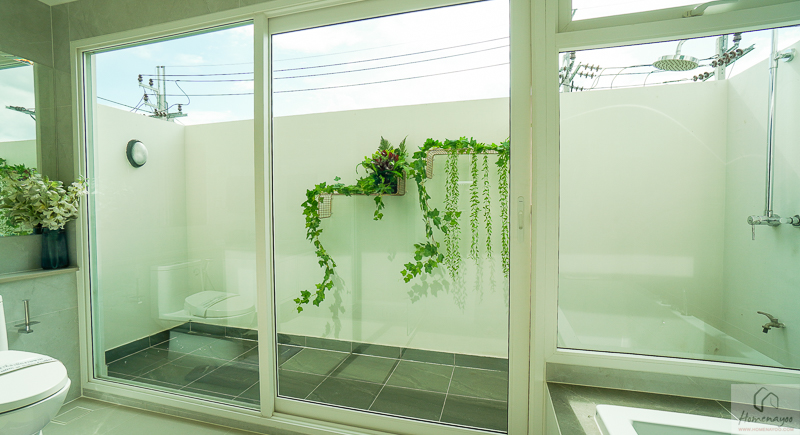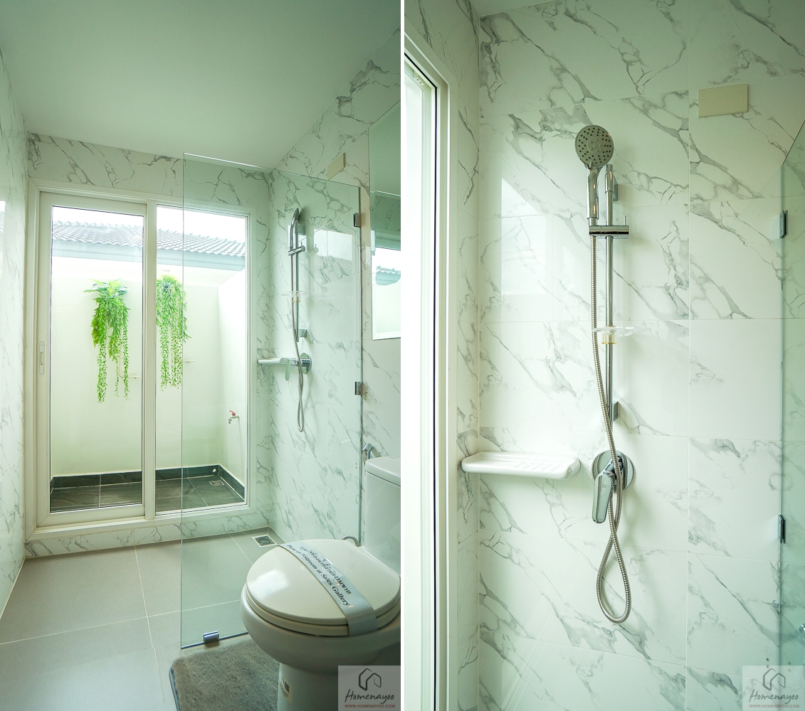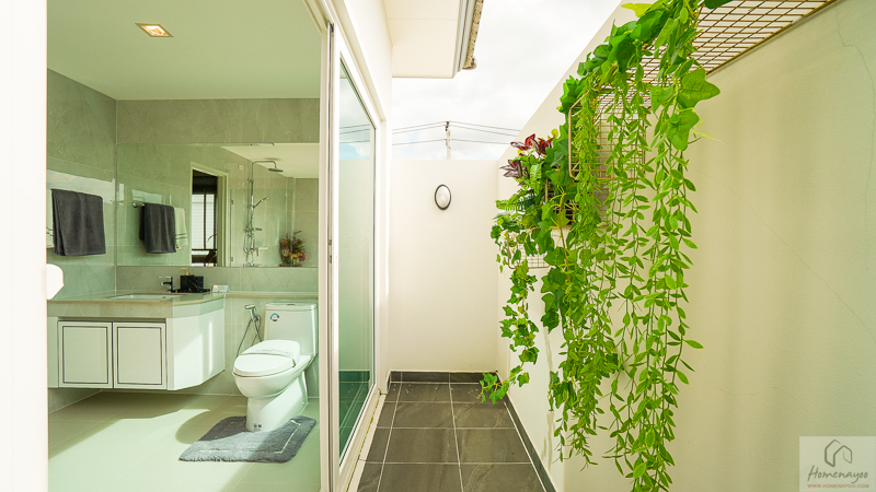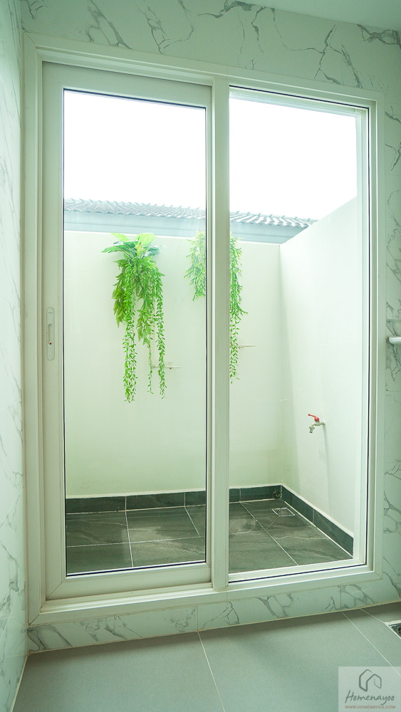 หากไม่ได้ใช้อาบน้ำจริง พื้นที่นี้ยังสามารถปรับเป็น มุมวางราวตากผ้า หรือจัดเป็น Pocket Garden เล็ก ๆ เพิ่มความสดชื่นให้บ้านได้อย่างลงตัวค่ะ