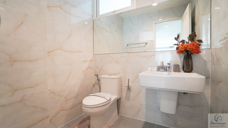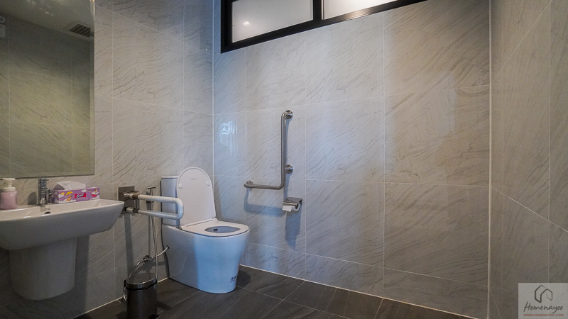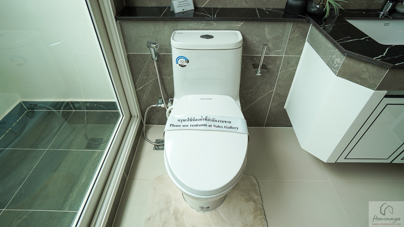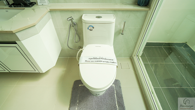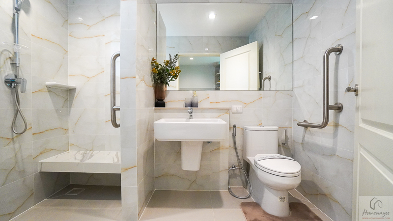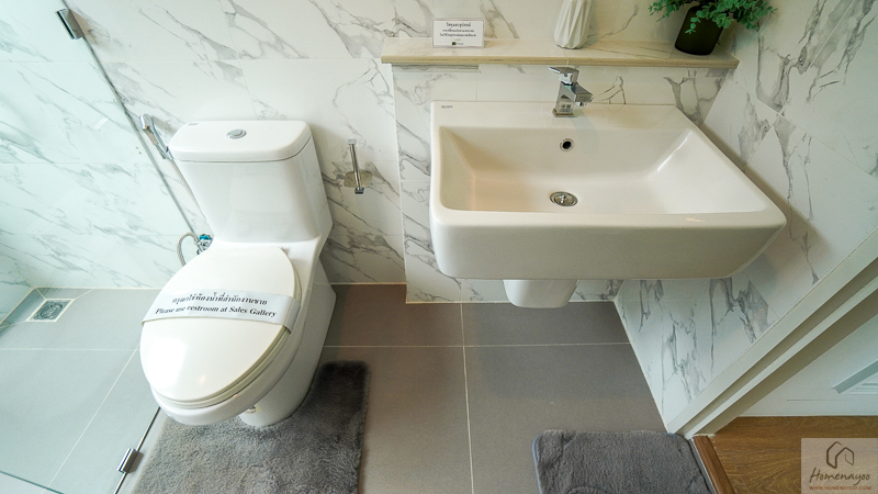 ห้องน้ำของห้องนี้จะจัดวาง Layout และฟังก์ชันการใช้งานคล้ายกับห้องน้ำในห้องนอน 2 ทุกอย่าง เพียงแต่ห้องนี้จะไม่มีระเบียงชมสวนด้านนอกเท่านั้นค่ะ