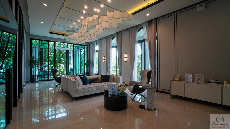Clubhouse หรูหรา 2 ชั้น ภายในมี Lobby เพดานสูง Double Volume ตกแต่งโคมไฟอลังการ, Co-Working Space โปร่งสบายด้วยกระจกบานใหญ่, Glass House สำหรับนั่งเล่น–ชมสวนในห้องแอร์, Fitness ที่เครื่องครบทั้ง Weight Training, Cardio และมุมชกมวย แถมมีระเบียงชมวิวด้านหน้า และ สระว่ายน้ำระบบเกลือ 8×25 ม. พร้อมสระเด็กแยกต่างหาก
