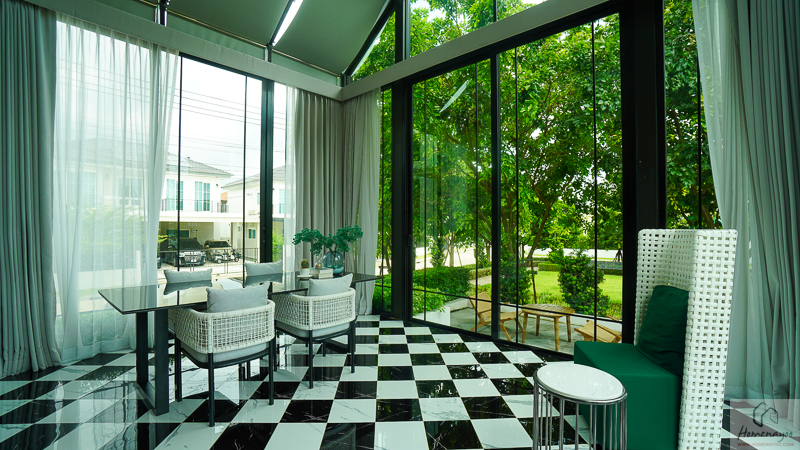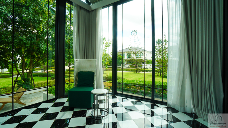 พื้นที่ตรงนี้สามารถปรับเป็นมุมพักผ่อน มุมนั่งอ่านหนังสือชมวิวสวน หรือจัดเป็มุมทำงานขนาดใหญ่ มุมออกกำลังกายก็ได้ค่ะ