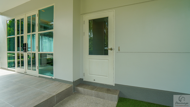 เปิดออกมาจะเจอกับลานซักล้างด้านหลังบ้าน ที่เชื่อมต่อกับห้องแม่บ้าน และห้องน้ำแม่บ้านได้ด้วยค่ะ