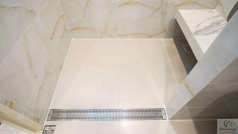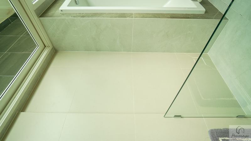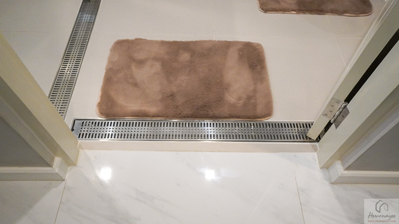ภายในส่วนอาบน้ำได้พื้นที่แบบ Non Step เช่นกัน สามารถเดินเชื่อมต่อเรียบสนิท ปลอดภัยต่อผู้สูงอายุและผู้ใช้ Wheelchair พร้อมรางระบายน้ำ Smart Drain ช่วยกันกลิ่น กันแมลง ระบายน้ำได้เร็ว ลดการขัง ทำให้พื้นแห้งสะอาดอยู่เสมอ