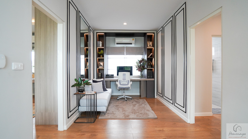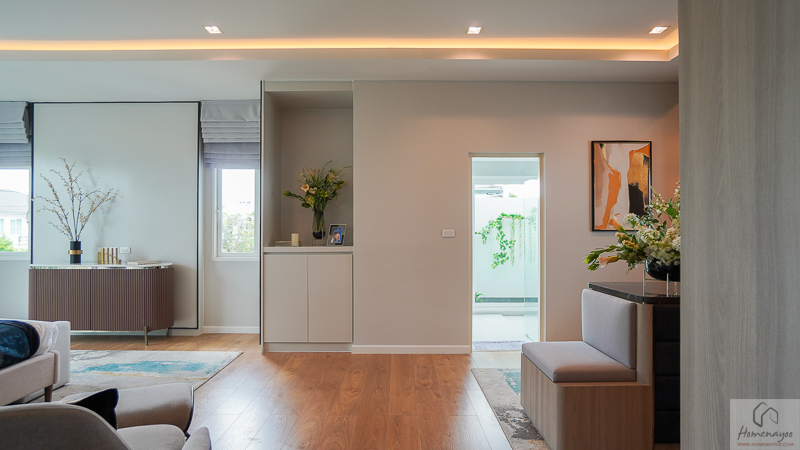 ส่วนในบ้านจริงเจ้าของบ้านสามารถปรับฟังก์ชันได้หลากหลาย จะทำเป็นมุมออกกำลังกายส่วนตัว, Live Studio, กั้นเป็นห้องสัตว์เลี้ยง หรือห้องพระก็ได้ เรียกว่าพื้นที่ตรงนี้ตอบโจทย์ได้หลายไลฟ์สไตล์เลยค่ะ