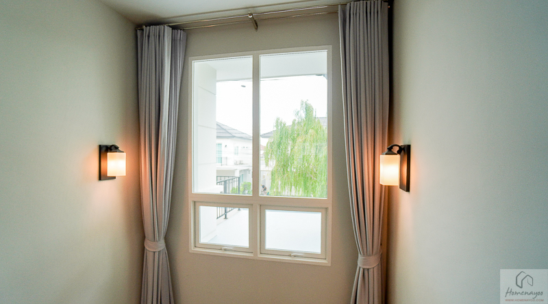 หลังเตียงนอนมีหน้าต่างกระจกบานเลื่อนติดมาให้ 1 บาน