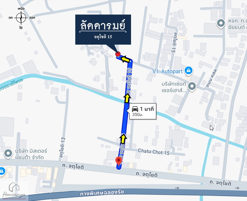 ตรงมาประมาณ 150 ม.* ถึงโครงการ ลัดดารมย์ จตุโชติ 15 ทางฝั่งขวามือค่ะ