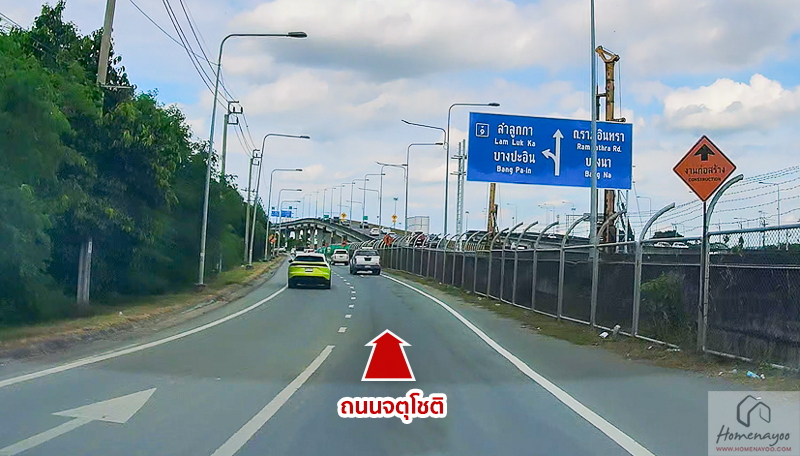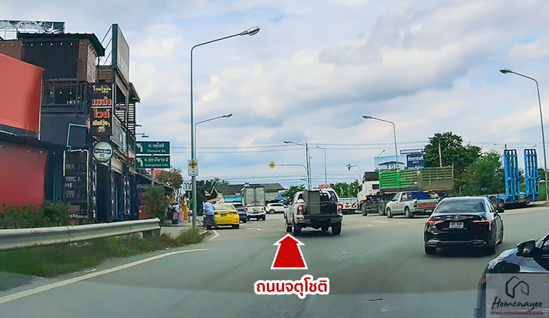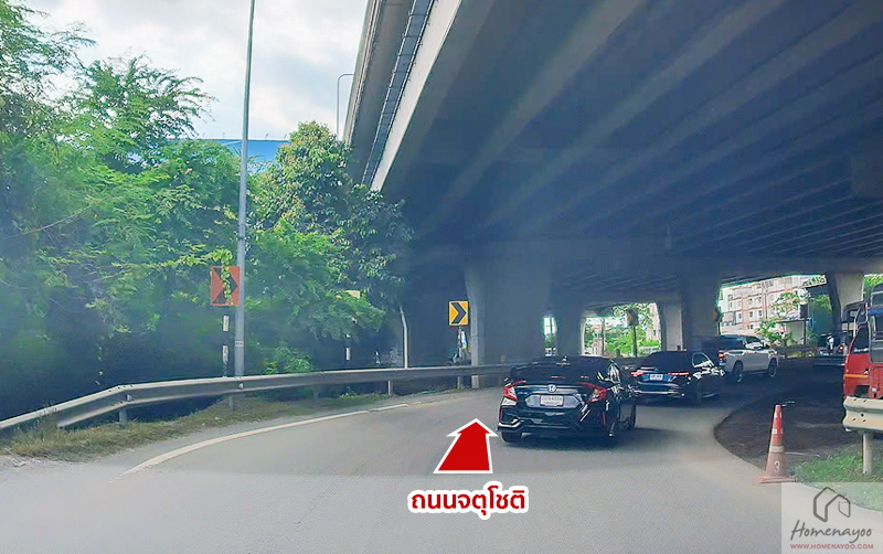 แล้วเบี่ยงซ้ายกลับไปถนนจตุโชติ ที่เดินรถแบบ Two Way อีกครั้ง