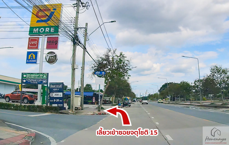 เลี้ยวขวามาแล้ว ตรงมาประมาณ 150 ม.* ให้เลี้ยวซ้ายเข้าซอยจตุโชติ 15 สังเกตมี CJ More อยู่หน้าปากทาง