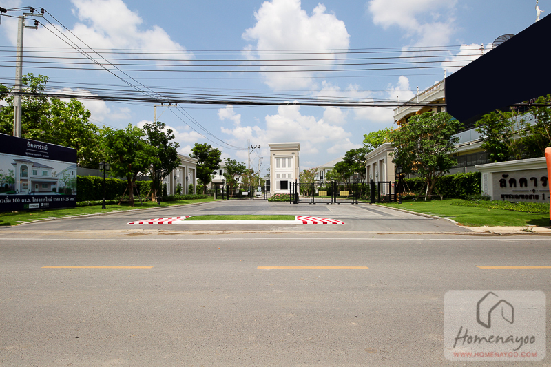 ซุ้มทางเข้าออกโครงการอยู่ทิศตะวันออกติดถ.ราชมนตรี