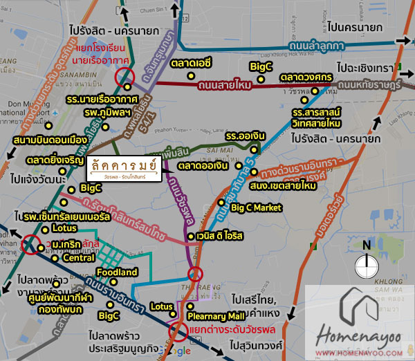 เข้าสู่ถนนวัชรพลให้ตรงไปตามทางเรื่อย ๆ ผ่านเทสโก้โลตัส และเสถียรธรรมสถานซ้ายมือ