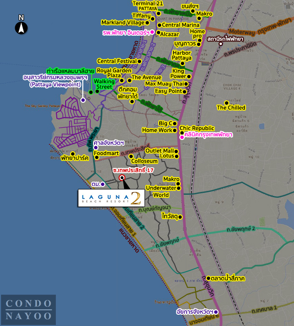 Laguna Beach Resort 2 จาก Height Holdings ตั้งอยู่บนซอยเทพประสิทธิ์ 9 เมืองพัทยา อ.บางละมุง จ.ชลบุรี ใกล้เซ็นทรัลเฟสติวัล พัทยา บีช, สวนสมเด็จพระนางเจ้าสิริกิติ์, The Chocolat Factory  และ The Sky Gallery พัทยา