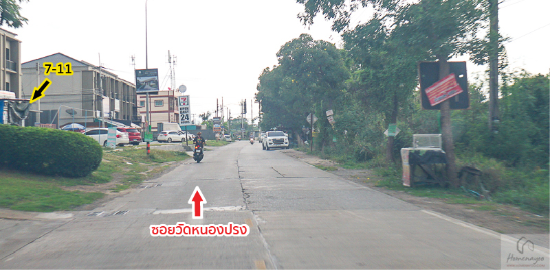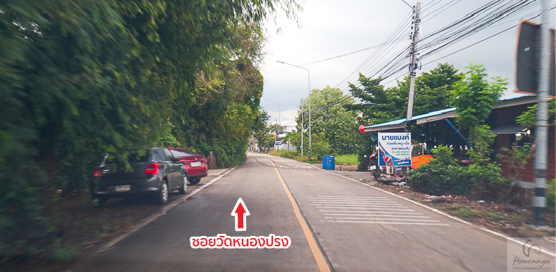 เลี้ยวขวามาจะเป็นซอยวัดหนองปรง ตามสองฝั่งทางส่วนใหญ่จะเป็นบ้านพักอาศัย