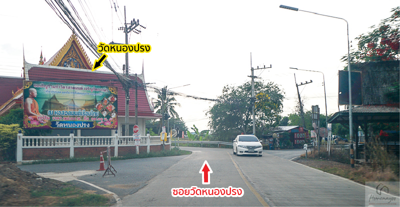 ตรงมาจะเจอสามแยก ให้เลี้ยวขวาเข้าซอยวัดหนองปรง