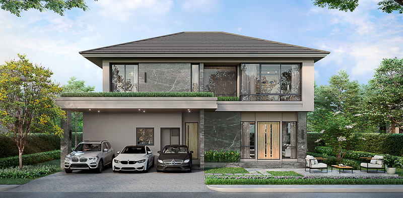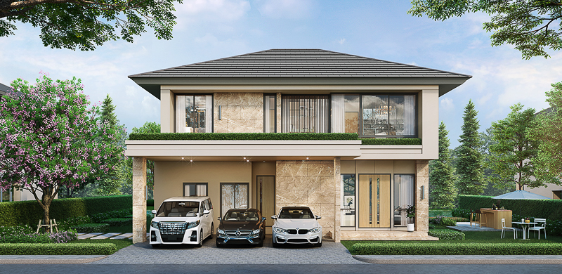 มีแบบบ้านให้เลือก 2 แบบ พื้นที่ใช้สอยเริ่ม 288-330 ตร.ม. ฟังก์ชันบ้าน 4 ห้องนอน, 5 ห้องน้ำ, 1 ห้องแม่บ้านพร้อมห้องน้ำในตัว, ที่จอดรถ 3 คัน