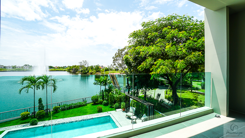 จากระเบียงวิวมองออกไปจะเห็นทะเลสาบแบบนี้ ซ้ายมือจะเป็นระเบียงห้อง Master Bedroom นั่นเองครับ