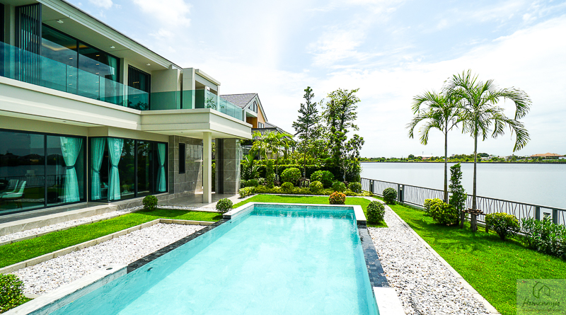 บ้านตัวอย่างแบบ Lake Villa II มีพื้นที่ใช้สอยให้มากถึง 330 ตร.ม. มีที่จอดรถในร่ม 3 คัน หน้าบ้านมีพื้นที่ให้จัดสวน และด้านหลังบ้านจะต่อเติม จัดสวนก็ได้ และมีสระว่ายน้ำน้ำที่ได้วิวทะเลสาบ จัด Private Pool Party ได้เลย
