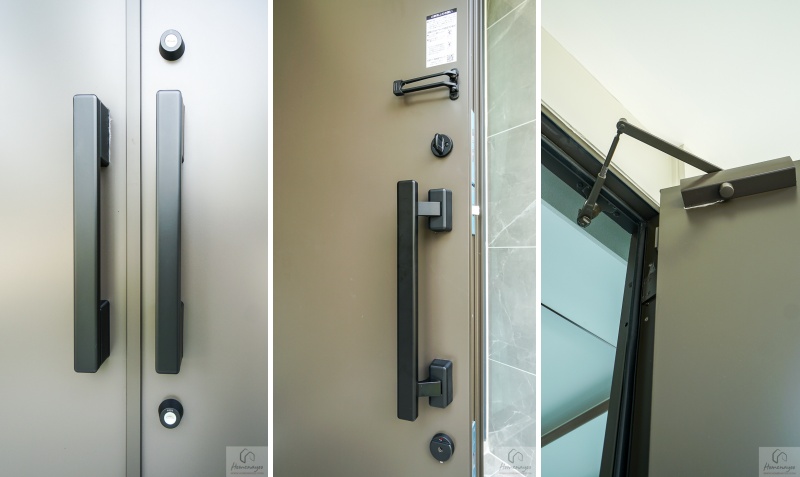 ส่วนวัสดุภายในบ้านได้ของดีมีคุณภาพ เริ่มตั้งแต่ประตูหน้าบ้านบานเปิดแบบคู่ GIESTA by TOSTEM พร้อมมือจับประตูของ Lixil เทคโนโลยีจากญี่ปุ่น หน้าต่างทุกบานได้กระจกใสเขียวตัดแสง พื้นชั้นล่างเป็นกระเบื้องแกรนิตโต้ขนาด 60 x 120 ซม. พื้นชั้น 2 เป็น Compound ไม้สัก บันไดบ้านเป็น คสล. ลูกตั้งลูกนอนเป็นไม้สัก ผนังจะได้ฉาบเรียบติดวอลเปเปอร์ทั้งหลัง