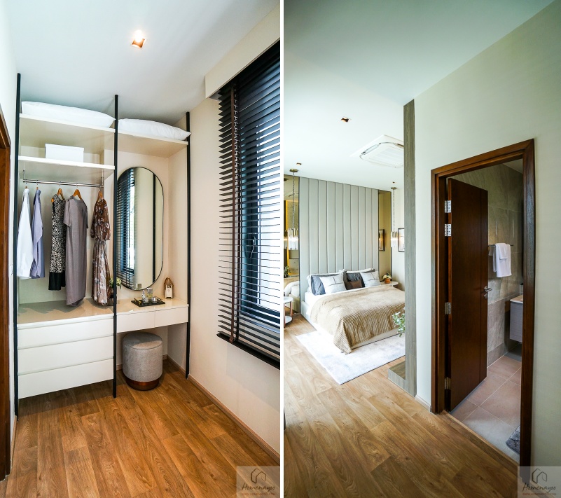 ส่วน Walk in closet มีพื้นที่มาให้พอสมควร จัดวางตู้เสื้อผ้าและโต๊ะเครื่องแป้งได้ ด้านในเป็นห้องน้ำ