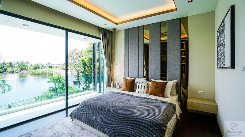 มีห้องนอนชั้นล่างรองรับ ออกแบบมารองรับผู้สูงอายุ และยังได้วิวทะเลสาบอีกด้วย ส่วนครัวได้เป็นครัวปิดพื้นที่ให้มาพอสมควร ส่วนชั้น 2 ห้องนอนทุกให้ให้พื้นที่มาเยอะทั้งหมด วางเตียง King Size ได้ มีพื้นที่ให้วางโต๊ะข้างเตียง โซฟาปลายเตียง อาร์มแชร์ได้ พร้อมห้องน้ำในห้องนอนและส่วน Walk in closet เหมือนเป็น Master Bedroom ทั้ง 3 ห้อง