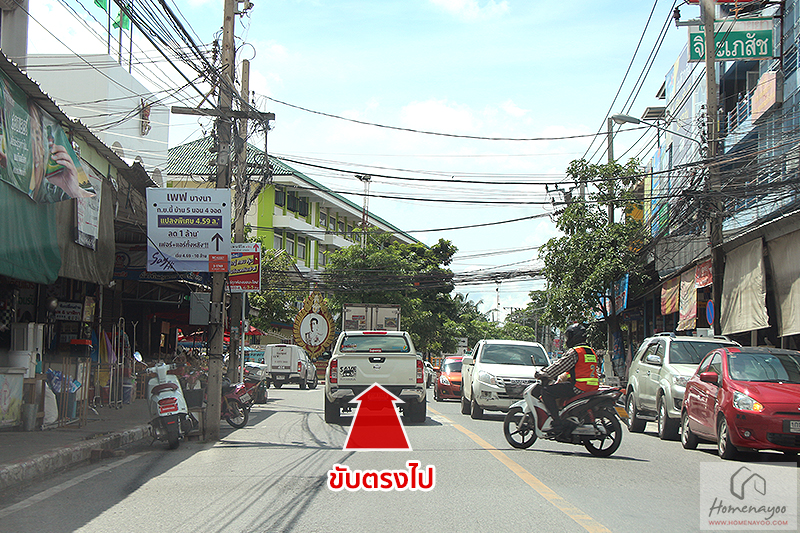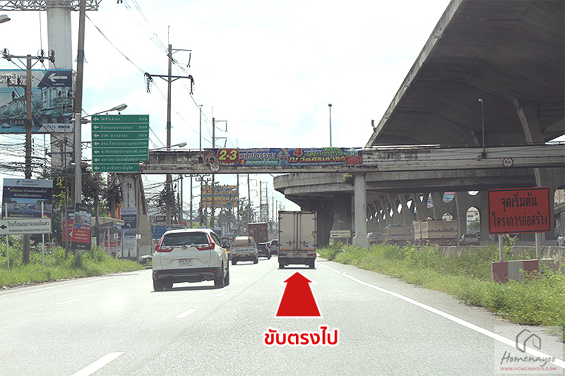ให้ชิดซ้ายขับตรงไป ผ่านสามแยกบางบ่อที่ตัดกับ ถ.เทพารักษ์ หรือ ทางหลวงแผ่นดินหมายเลข 3268 สายสำโรง-บางบ่อค่ะ และเราก็จะผ่าน Family Mart และ 7-11 (The Studio Park) ซึ่งห่างจากโครงการประมาณ 2 กม.ค่ะ