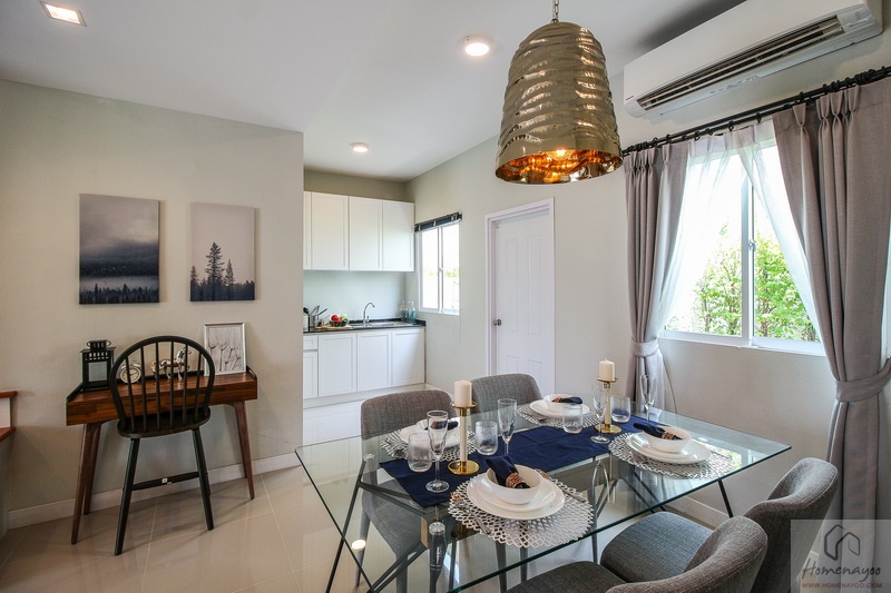 พื้นที่มุมทานอาหารขนาดกว้างขวาง สามารถจัดวางโต๊ะทานข้าวขนาดใหญ่ รองรับได้ 4-6 ที่นั่ง ได้สบาย ๆ