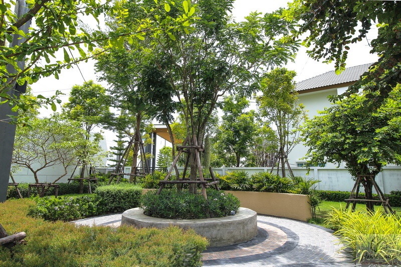 มองไปทางซ้ายมือเจอกับสวนหย่อม และ มุมนั่งเล่นพักผ่อนจุดแรกของโครงการ