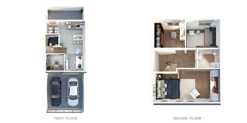 • แบบบ้าน Lyon ทาวน์โฮม 2 ชั้น พื้นที่ใช้สอย 125 ตร.ม. ฟังก์ชันบ้าน 4 ห้องนอน 2 ห้องน้ำ ที่จอดรถ 2 คัน