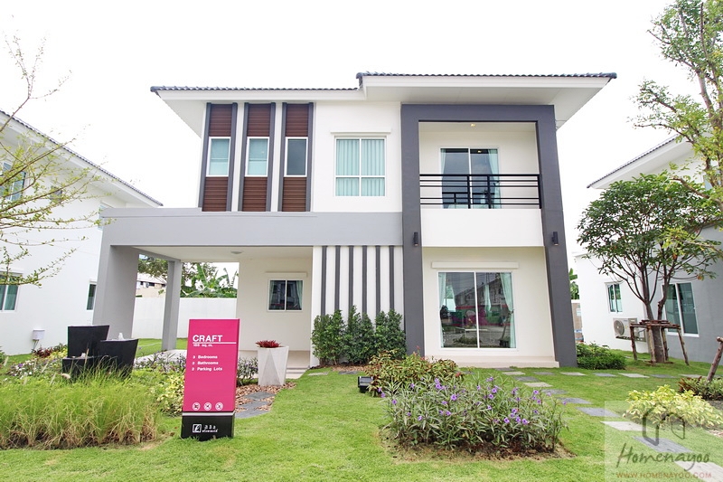 Craft บ้านเดี่ยว 2 ชั้น พื้นที่ใช้สอย 155.0 ตร.ม. มีพื้นที่จอดรถ 2 คัน ด้าหน้าบ้านและโดยรอบมีพื้นที่สวน เปิดเข้าไปส่วนแรกของบ้านจะเป็นห้องนั่งเล่นกว้าง อยู่ใกล้กับพื้นที่ทานอาหาร ครัวเป็นครัวเปิดสามารถติดตั้งประตูให้เป็นครัวปิดและติดตั้งเครื่องดูดควันก็จะใช้งานได้สะดวก ไม่จำเป็นต้องต่อเติมครัวไทยหลังบ้านเพิ่ม พื้นที่หลังบ้านเป็นพื้นที่ซักล้าง