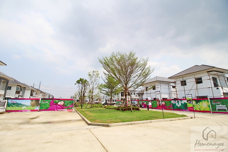 เข้ามาอีกหน่อยจะเป็นสวนสาธารณะส่วนกลางในโครงการ ถนนที่ขนานกับสวนจะกว้าง 9-10 ม. ส่วนถนนในซอยจะกว้าง 8 ม.