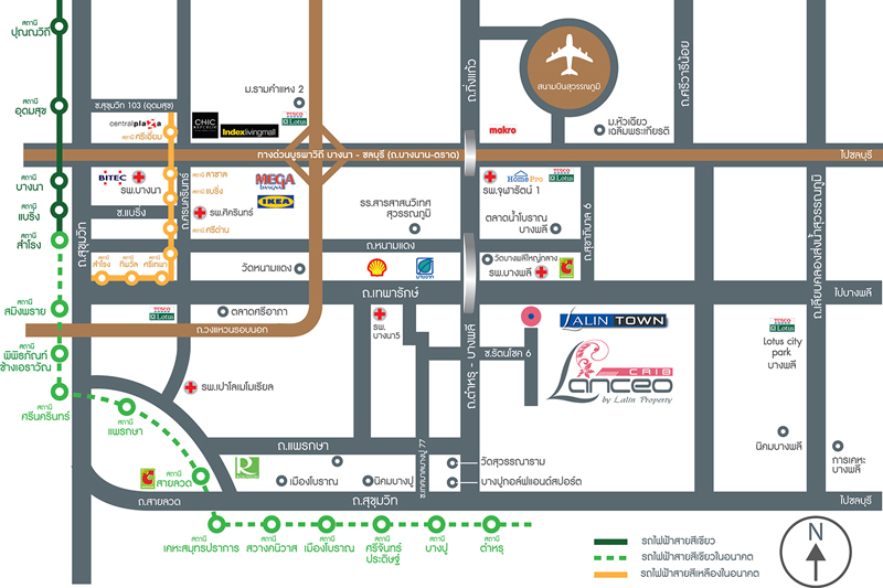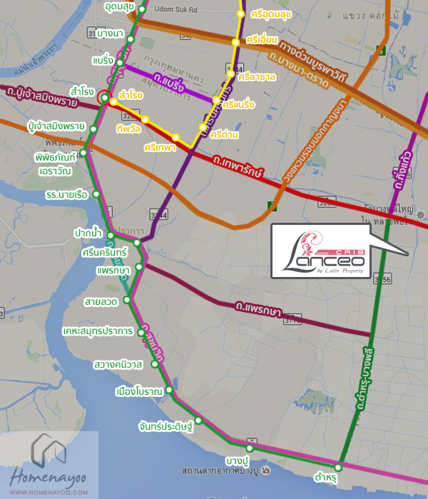 โครงการในอนาคต ก็จะมีสายสีเขียวส่วนต่อขยาย ที่สถานีปลายทางคือสถานีตำหรุไปเชื่อมต่อกับสายสีเขียวปัจจุบันที่สถานีสำโรง ซึ่งสถานีตำหรุจะเป็นสถานีที่ใกล้โครงการมากที่สุดค่ะ และจะมีสายสีเหลืองที่วิ่งตรงไปจนถึงรัชดา-ลาดพร้าว