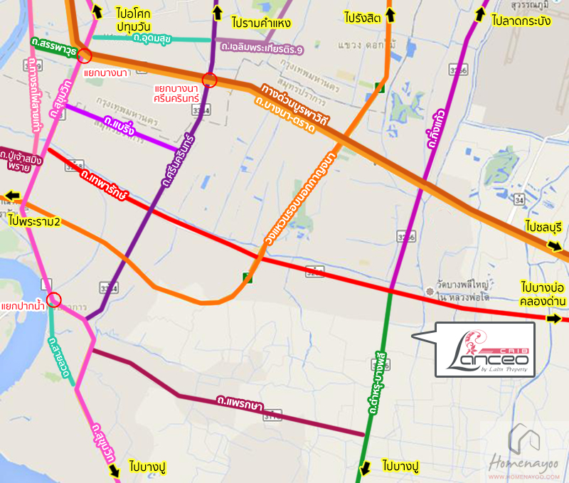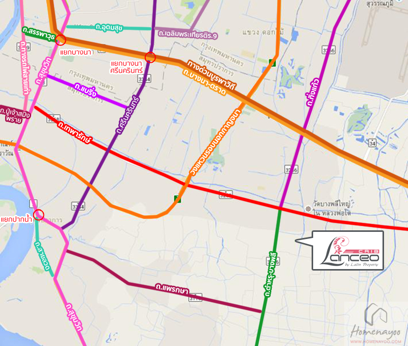 เรามีภาพการเดินทางโดยรถมาให้ชมกัน เส้นทางการเดินทางตามลูกศรแดง โดยเริ่มเดินทางจาก ถนนสุขุมวิท→ เลี้ยวซ้ายเข้าถนนเทพารักษ์ → เลี้ยวเข้าถนนตำหรุ-บางพลี → เลี้ยวซ้ายเข้าซอยรัตนะโชค 6 → ตรงเข้าไปประมาณ 1.3 กม. ก็จะเจอพื้นที่โครงการลลิล ทาวน์ Lanceo Crib เทพารักษ์-กิ่งแก้ว แล้วค่ะ