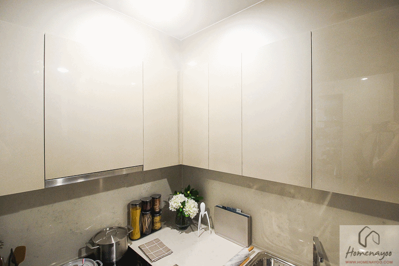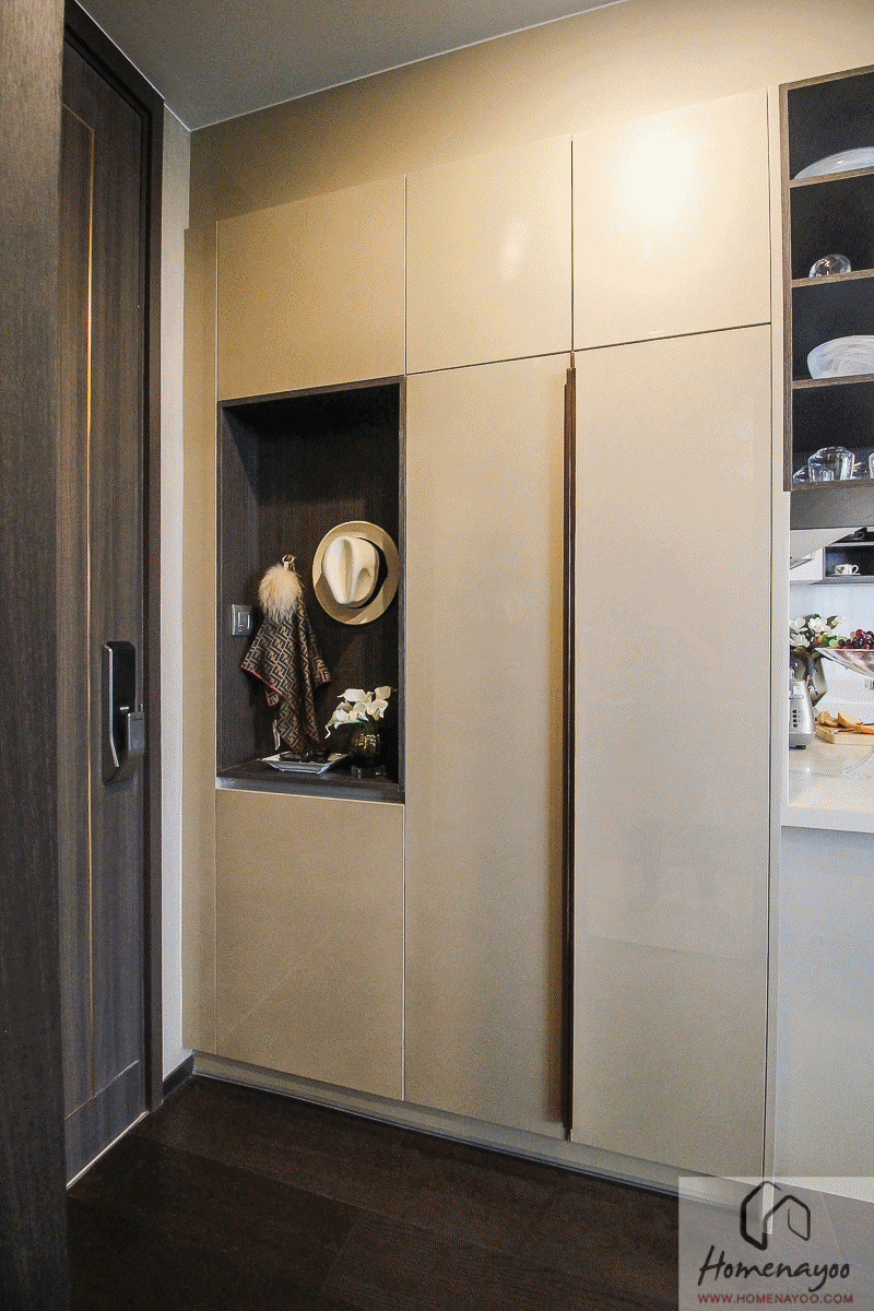 และอีกอย่างคือโซนแม่บ้านจะมีทางเข้าออกเฉพาะด้วยนะ เป็นประตูที่เปิดออกไปโถงทางเดินด้านนอกได้เลย โดยไม่ต้องเดินวนไปเข้าประตูหลักหน้าห้อง ช่วยให้การใช้งานถูกแยกได้เป็นสัดส่วนมากขึ้นค่ะ