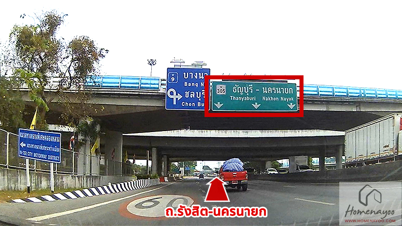 เบี่ยงซ้ายออกตามป้ายไปรังสิต-นครนายก และจากนั้นให้ชิดขวาตามป้ายไปทางนครนายกค่ะ