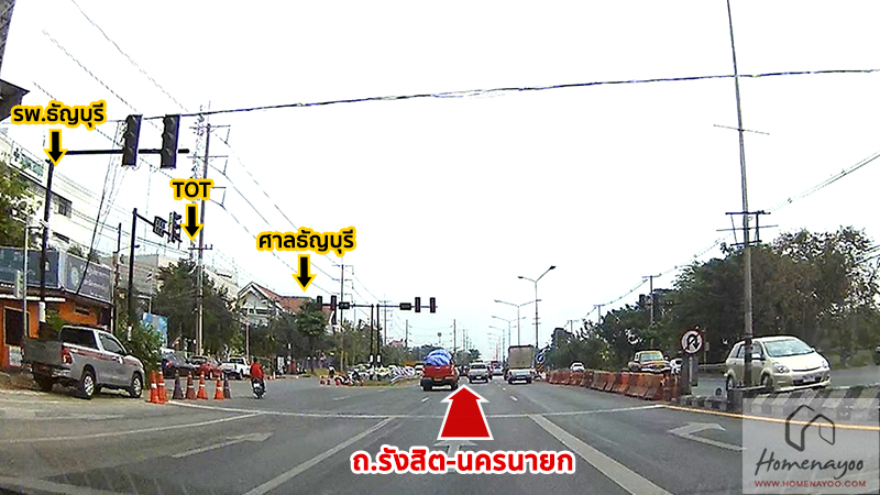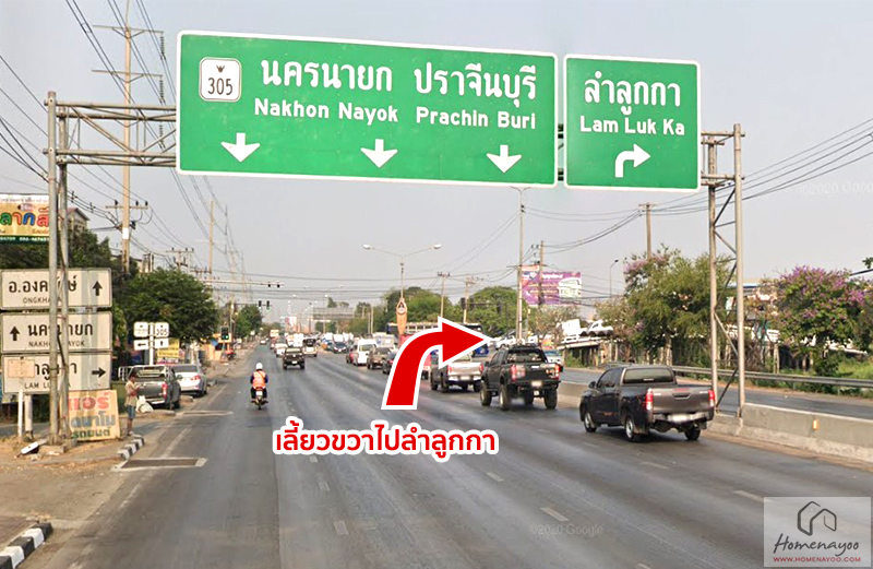 ถึงสามแยกคลอง 7 แล้วเลี้ยวขวา