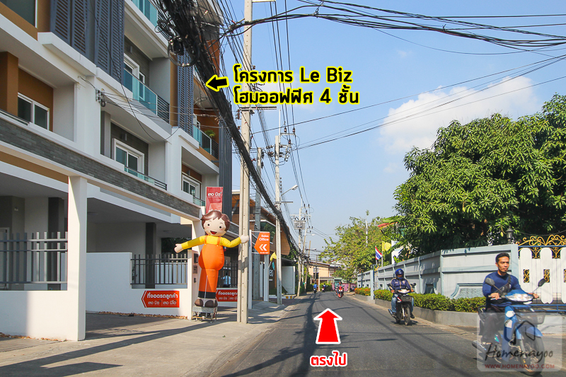 ตรงเข้ามาเล็กน้อยจะเจอกับสำนักงานขายทางซ้ายมือ เป็นโฮมออฟฟิศ 4 ชั้นชื่อโครงการว่า Le Biz เจ้าของเดียวกันกับ Le Neo สุขุมวิท-เอราวัณ