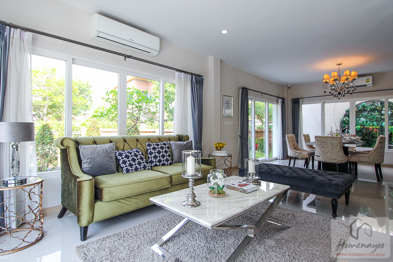 ขายบ้านตัวอย่าง เฟอร์นิเจอร์ครบ ติดสวน ใกล้สโมสร แปลงใหญ่ 3 ห้องนอน 2 ห้องอเนกประสงค์ 3 ห้องน้ำ 2 ที่จอดรถ