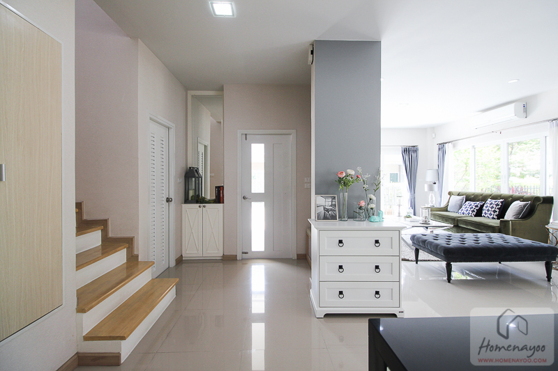 กลับเข้ามาในบ้าน ถัดจากห้องครัวจะเป็นบันไดทางขึ้นไปชั้น 2, ห้องน้ำ และประตูเปิดออกไปลานจอดรถ