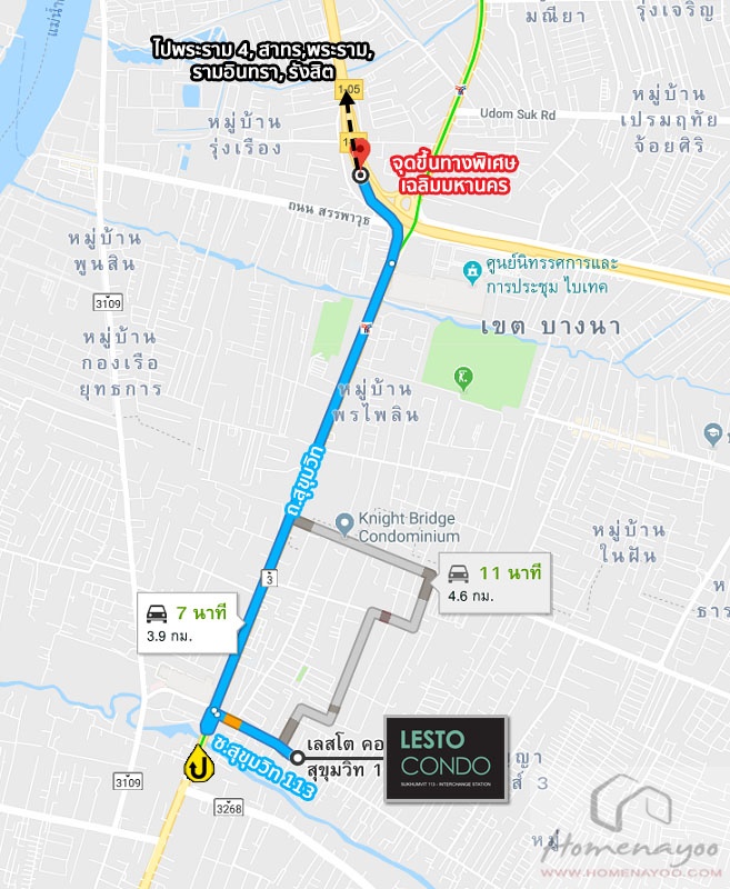 วันนี้ทางทีมงาน Homenayoo มีภาพการเดินทางไปสู่ตัวโครงการ Lesto สุขุมวิท 113 โดยใช้รถยนต์ส่วนตัวมาฝากกันค่ะ โดยเราจะเริ่มการเดินทางจาก