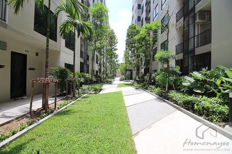 การออกแบบโครงการ และวัสดุ โครงการเป็นคอนโด Low Rise มีทั้งหมด 4 อาคาร กับห้องพักอาศัย 768 ยูนิต และร้านค้าอีก 5 ยูนิต บนพื้นที่โครงการ 7-0-44 ไร่ ออกแบบในคอนเซ็ปต์ Feeling the Nature ด้วยส่วนกลางกว่า 3,000 ตร.ม. และสวนสาธารณะขนาดใหญ่ เน้นความต่อเนื่องสอดคล้องกับธรรมชาติ ดีไซน์อาคารเรียบง่ายแนว Tropical Modern กับห้อง Ultimate Unit Lay-out ที่วางแปลนมาได้อย่างดี ทำให้ห้องดูกว้างขวางและโปร่งโล่ง สามารถใช้งานได้ทุกตารางเมตร ซึ่งทางโครงการขายแบบ Fully Furnished ได้เฟอร์นิเจอร์มาครบ พร้อมเครื่องปรับอากาศ, เครื่องใช้ไฟฟ้า 4 ชิ้น และเครื่องทำน้ำอุ่นในห้องน้ำ กับวัสดุที่ได้มาตรฐาน ตกแล้วเริ่มต้นที่ 1.45 ล้านบาท หรือตกตร.ม.ละ 54,717 บาท ถือว่าใช้ได้ทีเดียวค่ะ
